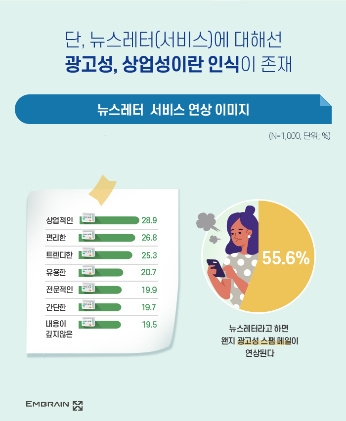 하지만 뉴스레터라고 하면 스팸 메일이 연상된다는 의견(55.6%) 상당해