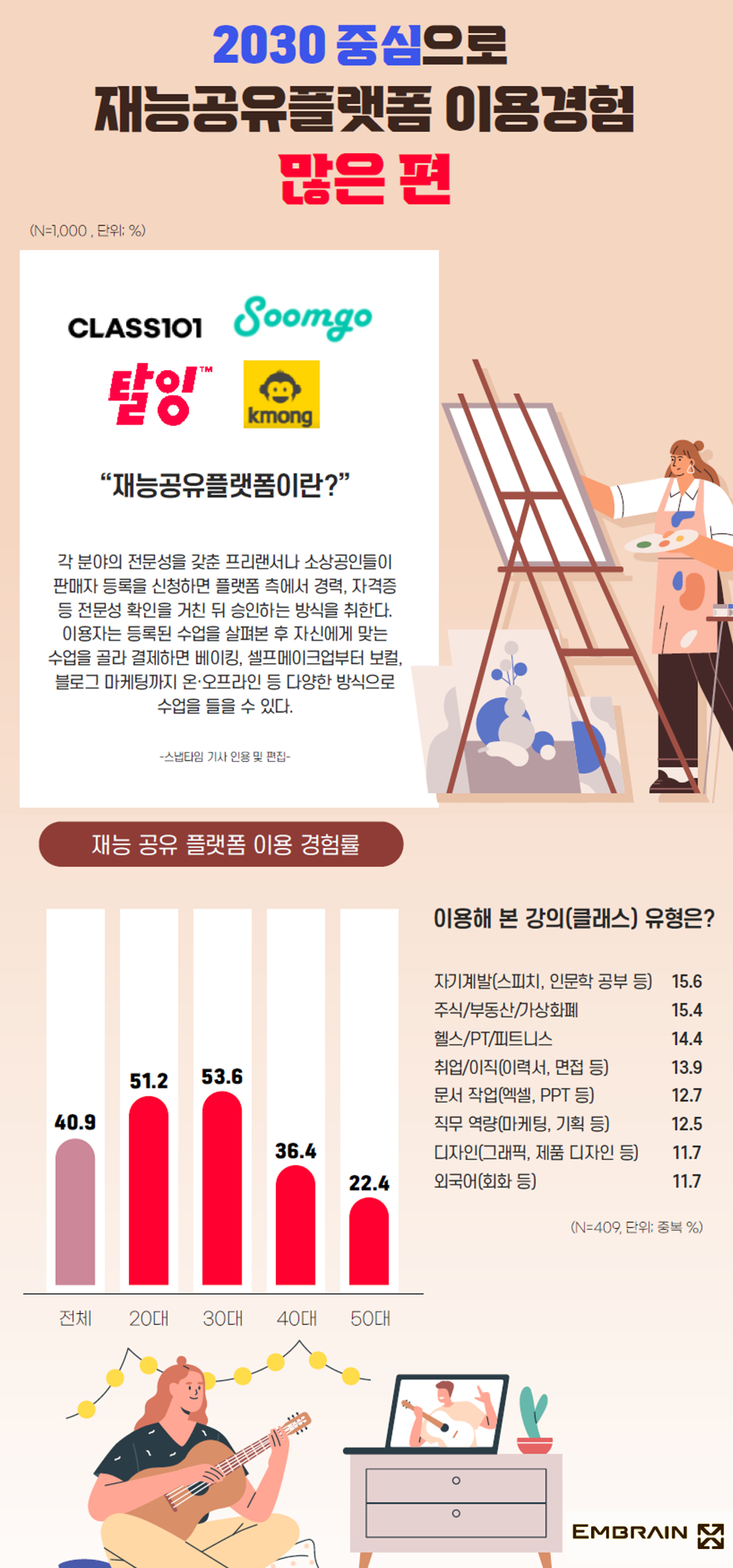 - 40.9% “재능 공유 플랫폼 이용 경험 있어”