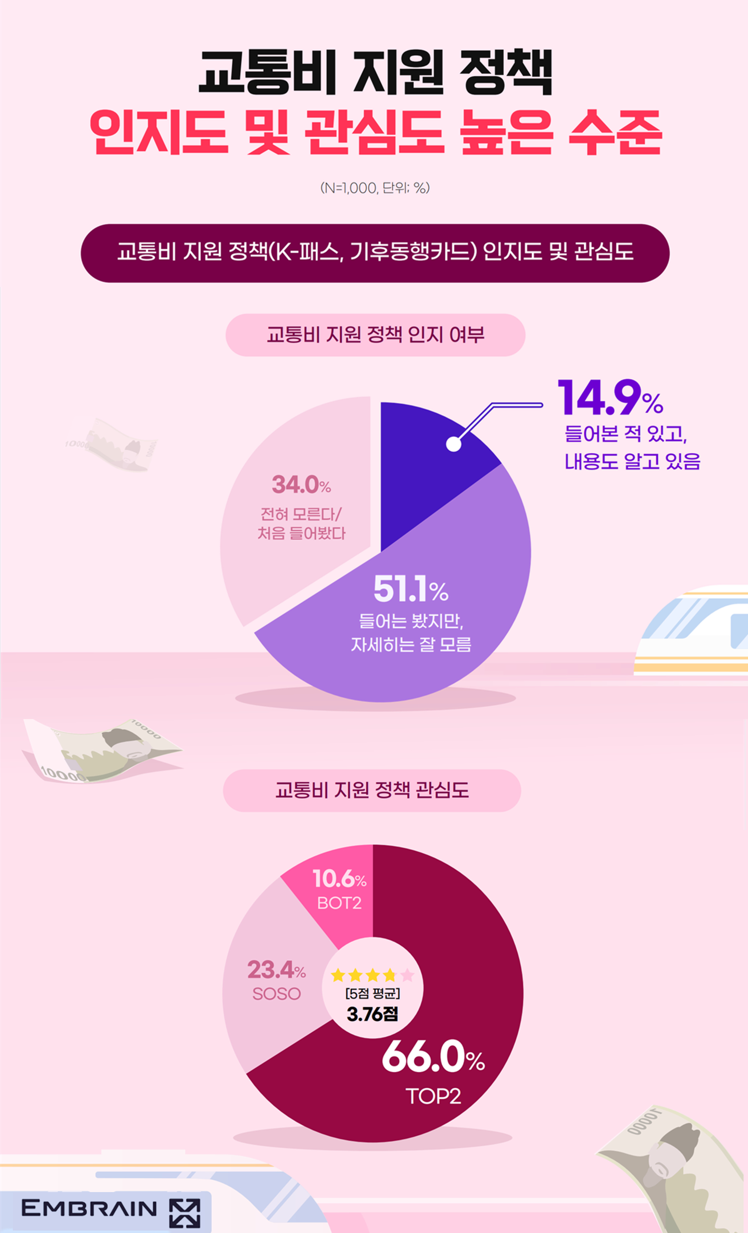- ‘교통비 지원 정책(K-패스, 알뜰교통카드)’에 대한 관심 높은 편
