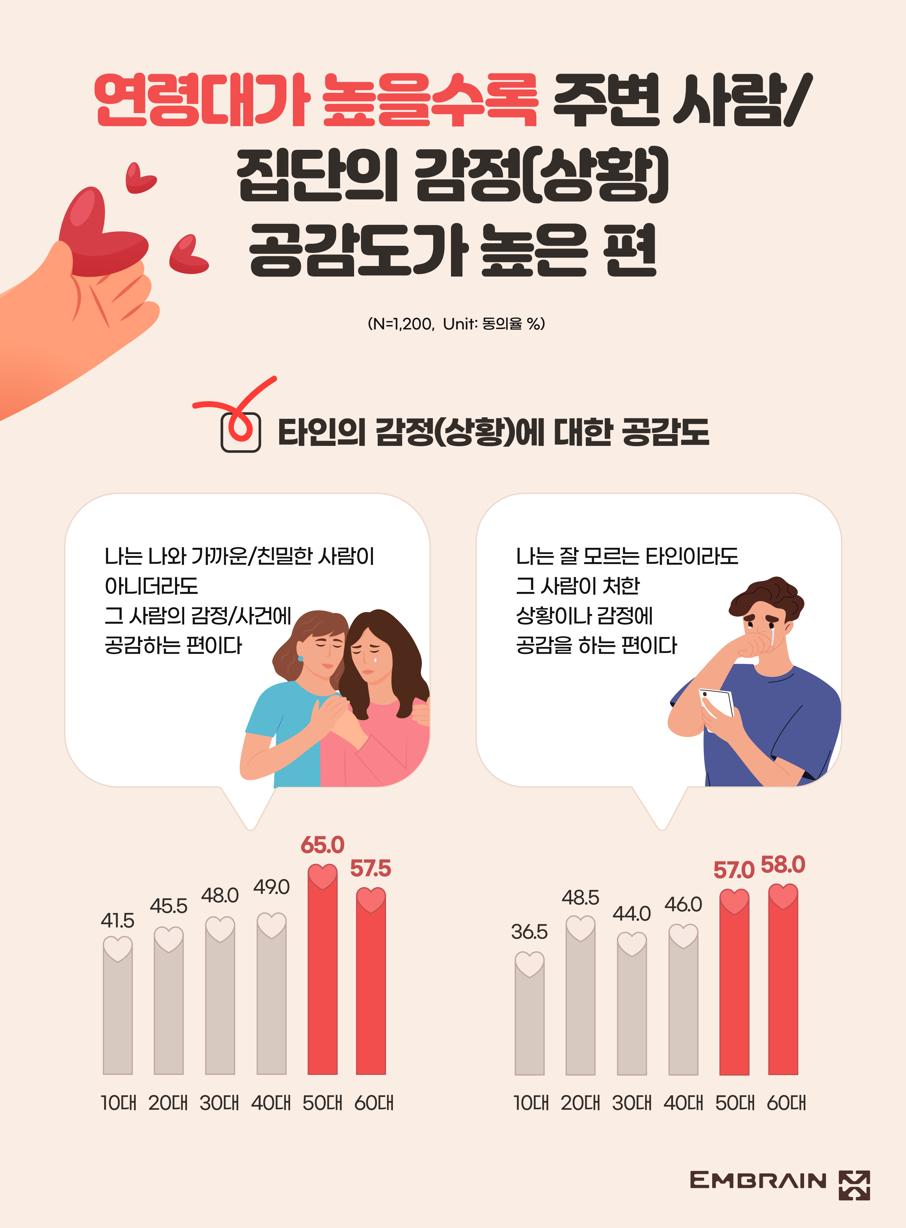 - 고연령층, “잘 모르는 사람일지라도 감정에 공감하는 편”