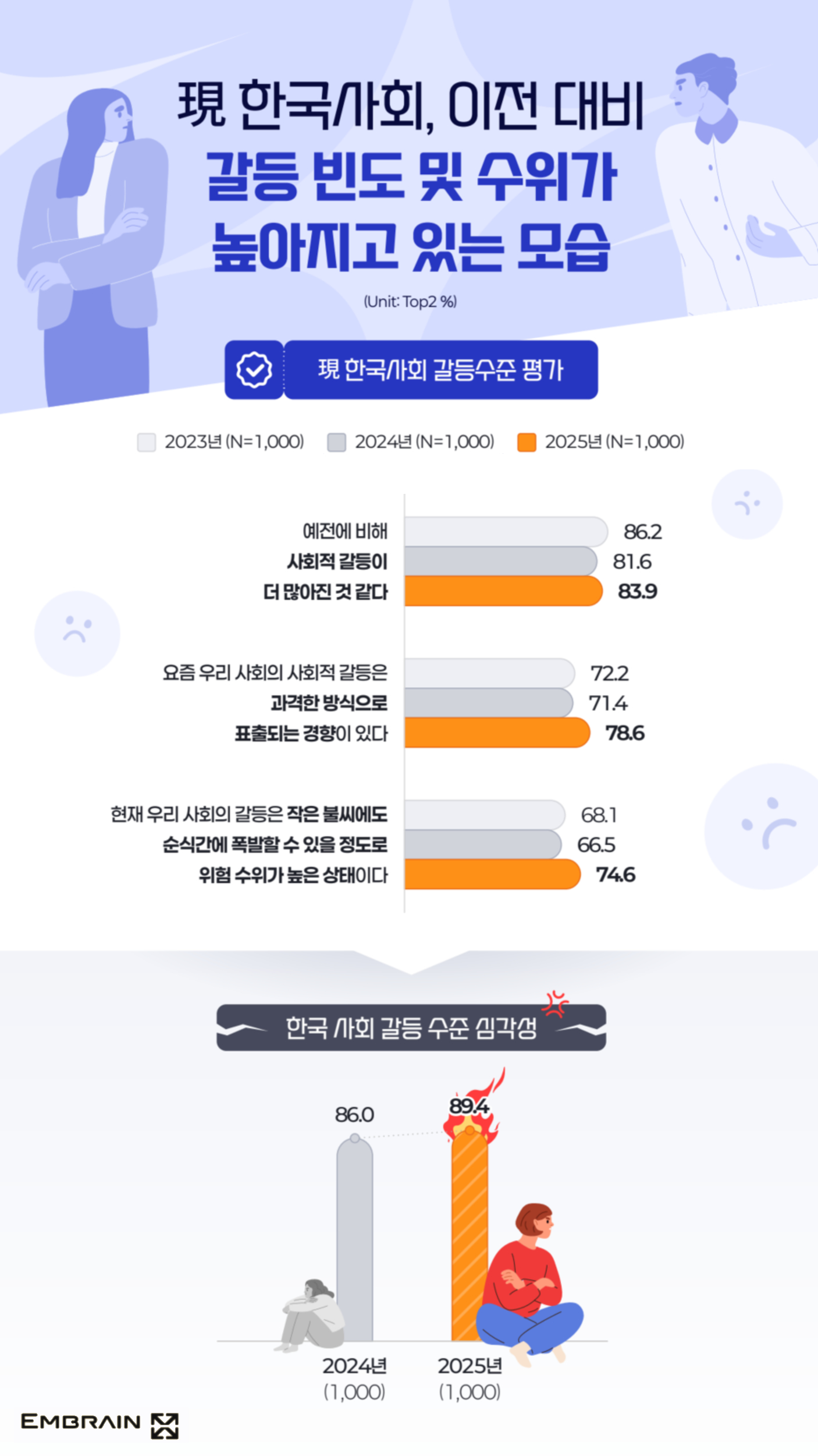- 10명 중 8명, “과거 대비 ‘사회적 갈등’ 더 많아져”