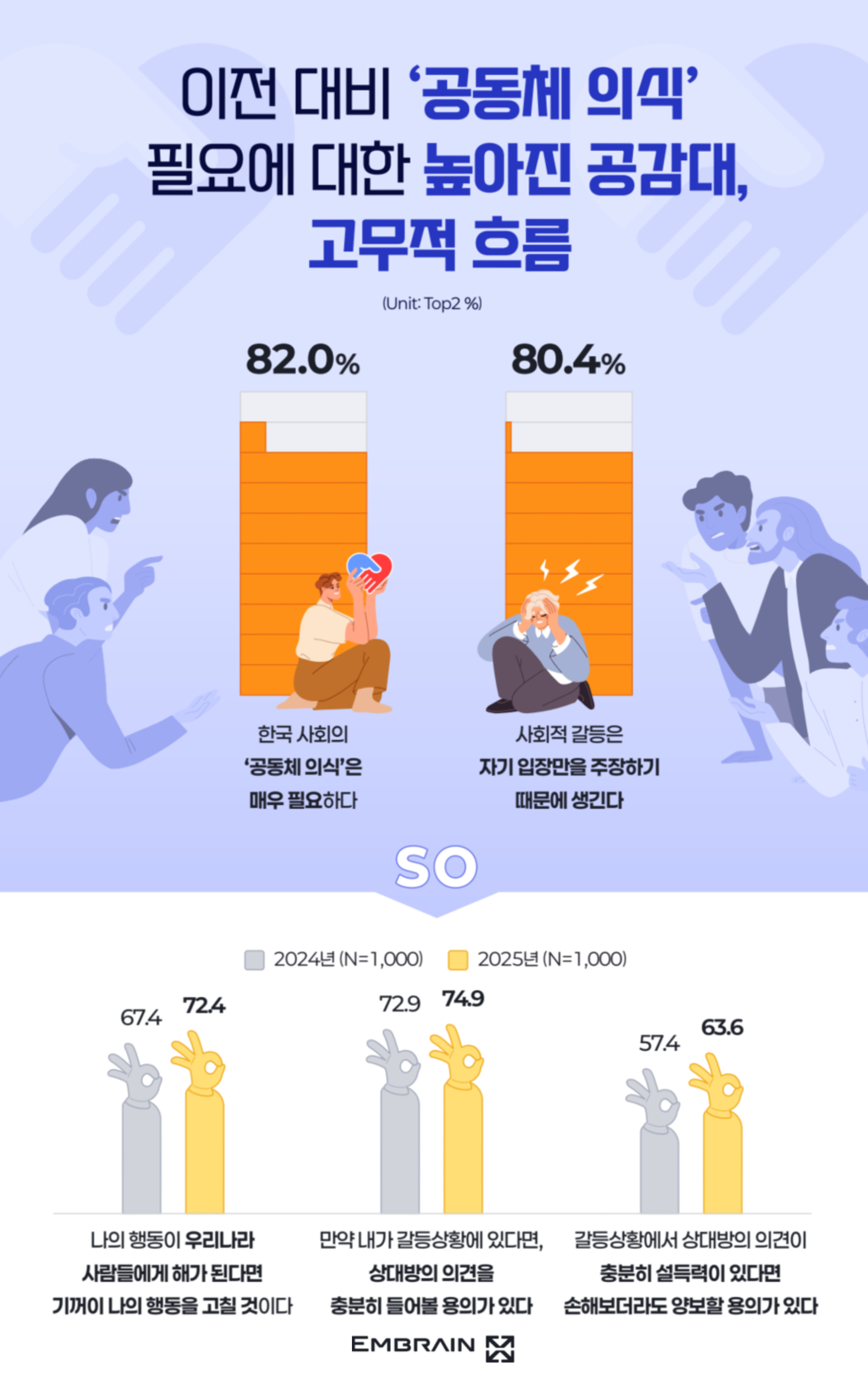 - 82.0%, “한국 사회 내 ‘공동체 의식’ 필요해”