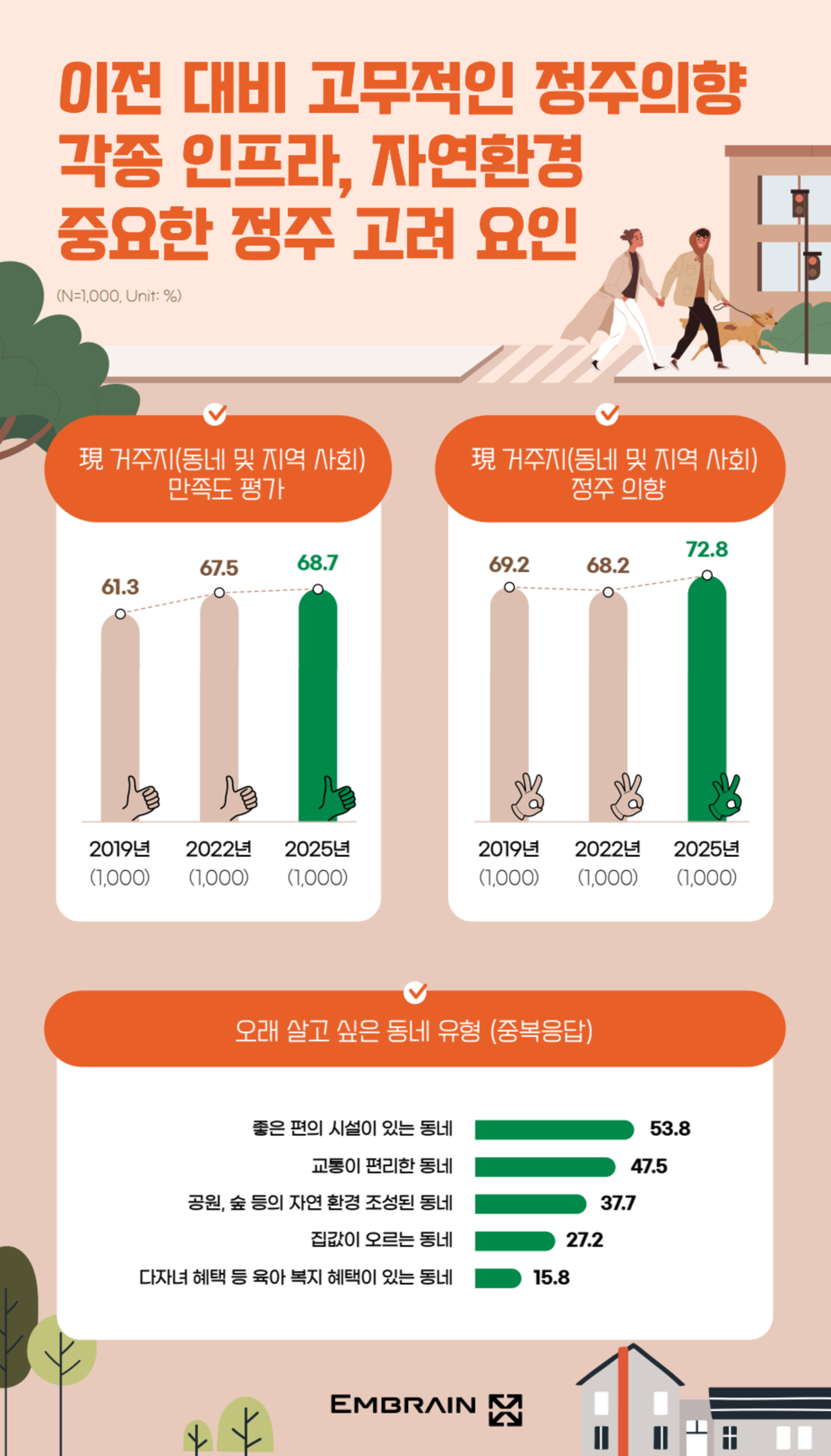 - 10명 중 7명, “우리 동네 인프라에 만족하고 있어”