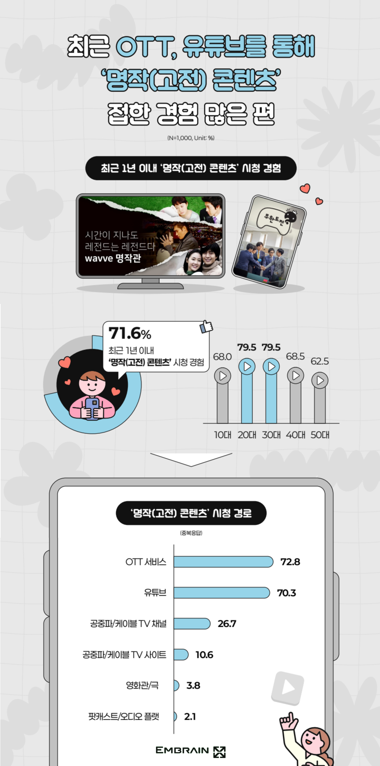 - 71.6%, “최근 1년 이내 ‘명작 드라마’ 시청한 경험 있어”