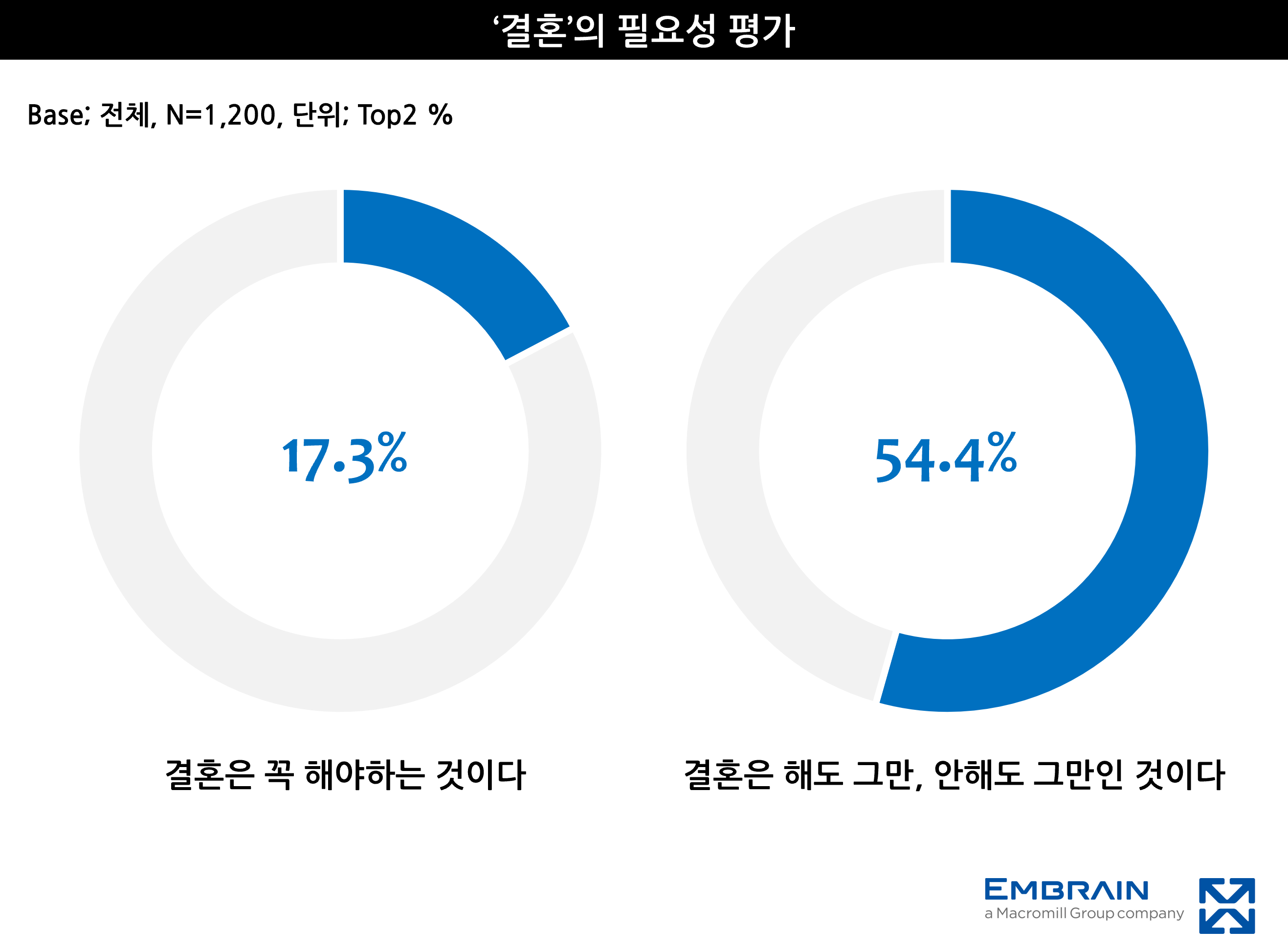 - ‘결혼은 꼭 해야 한다’는 인식, 전체 17.3% 불과