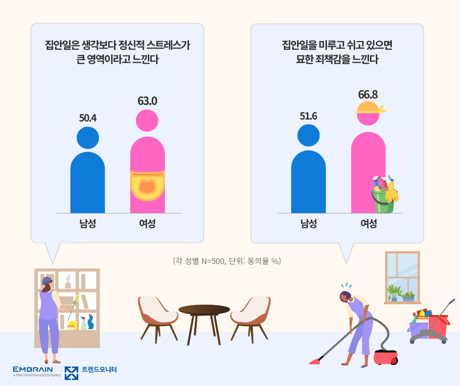 여전히 여성이 남성보다 집안일을 미뤘을 때