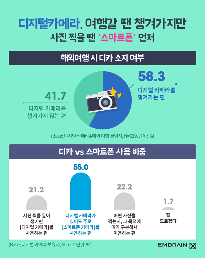 - 디지털 카메라는 스마트폰 카메라와는 달리 ‘여행’을 기록하기 위해 가장 많이 사용돼