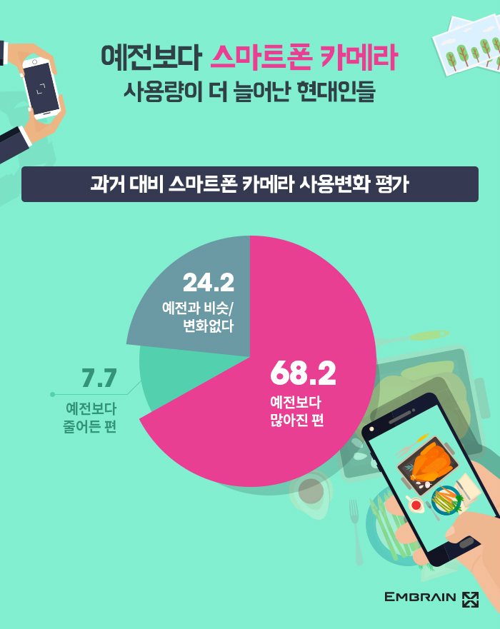 스마트폰 카메라 사용자의 68.2%가 “예전보다 사용이 많아졌다”고 느껴