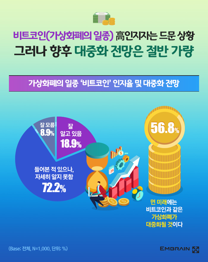 그러나 10명 중 6명 “먼 미래에는 가상화폐가 대중화될 것”이라고 바라봐