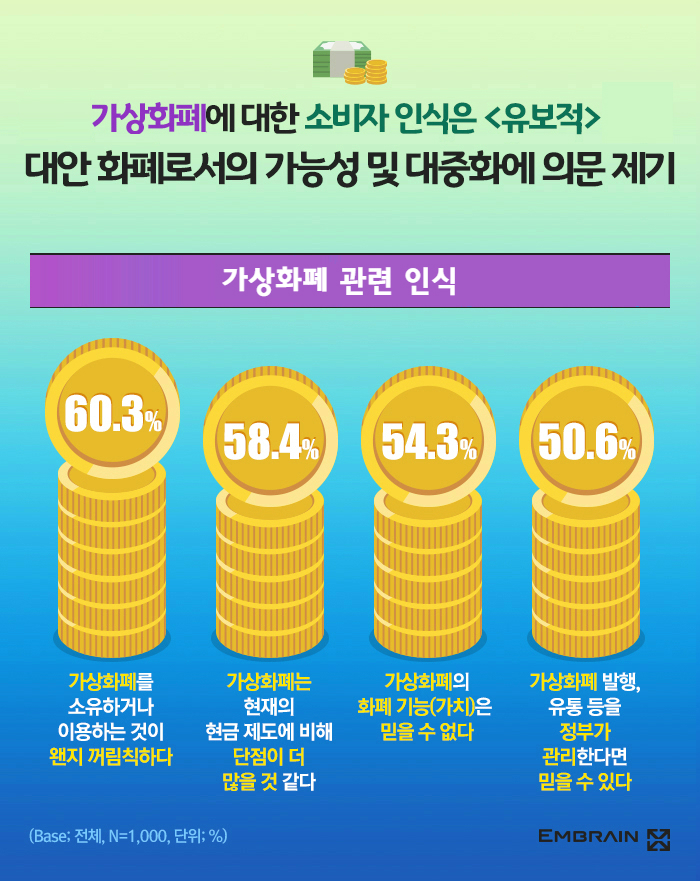 - 소비자 절반 이상 “가상화폐의 기능 및 가치는 믿을 수 없으며, 주로 지하경제에서 유통되는 돈인 것 같다”