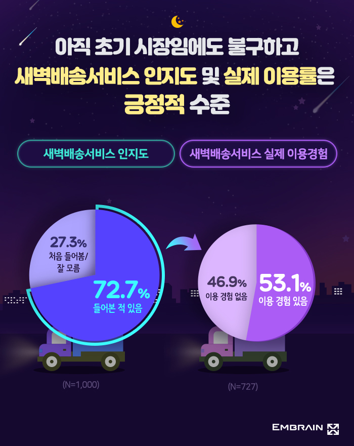 - 인지자 절반 이상이 새벽 배송 서비스 이용경험