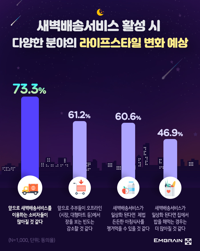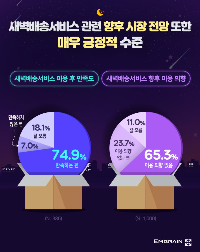 - 새벽 배송 서비스 이용자의 74.9%가 만족감 드러내