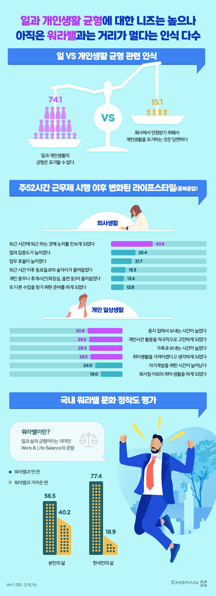- 전체 74.1% “일과 개인생활의 균형을 포기할 수 없다”