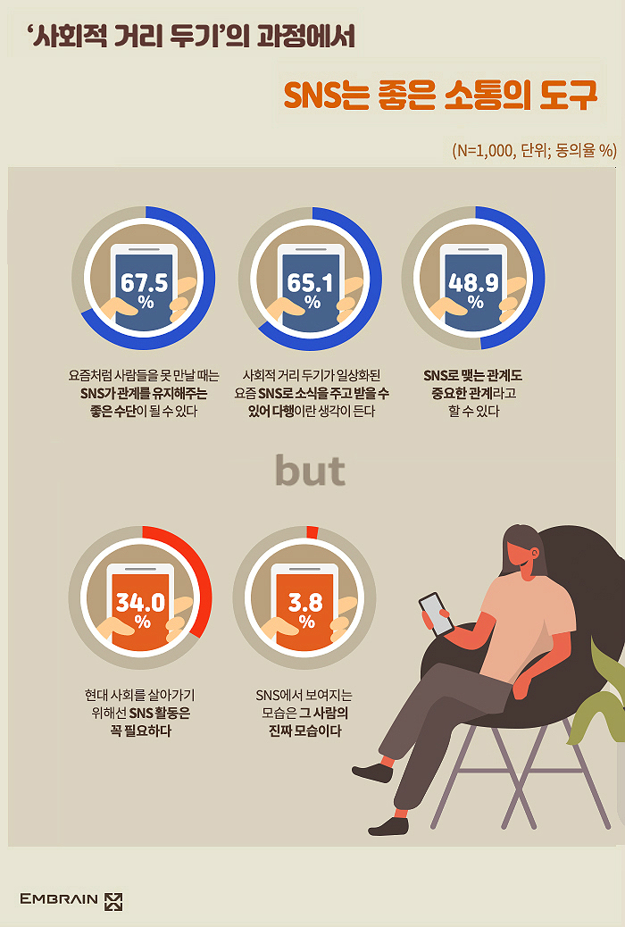 - 67.5% “요즘처럼 사람들 못 만날 때는 SNS가 관계 유지에 좋은 수단”