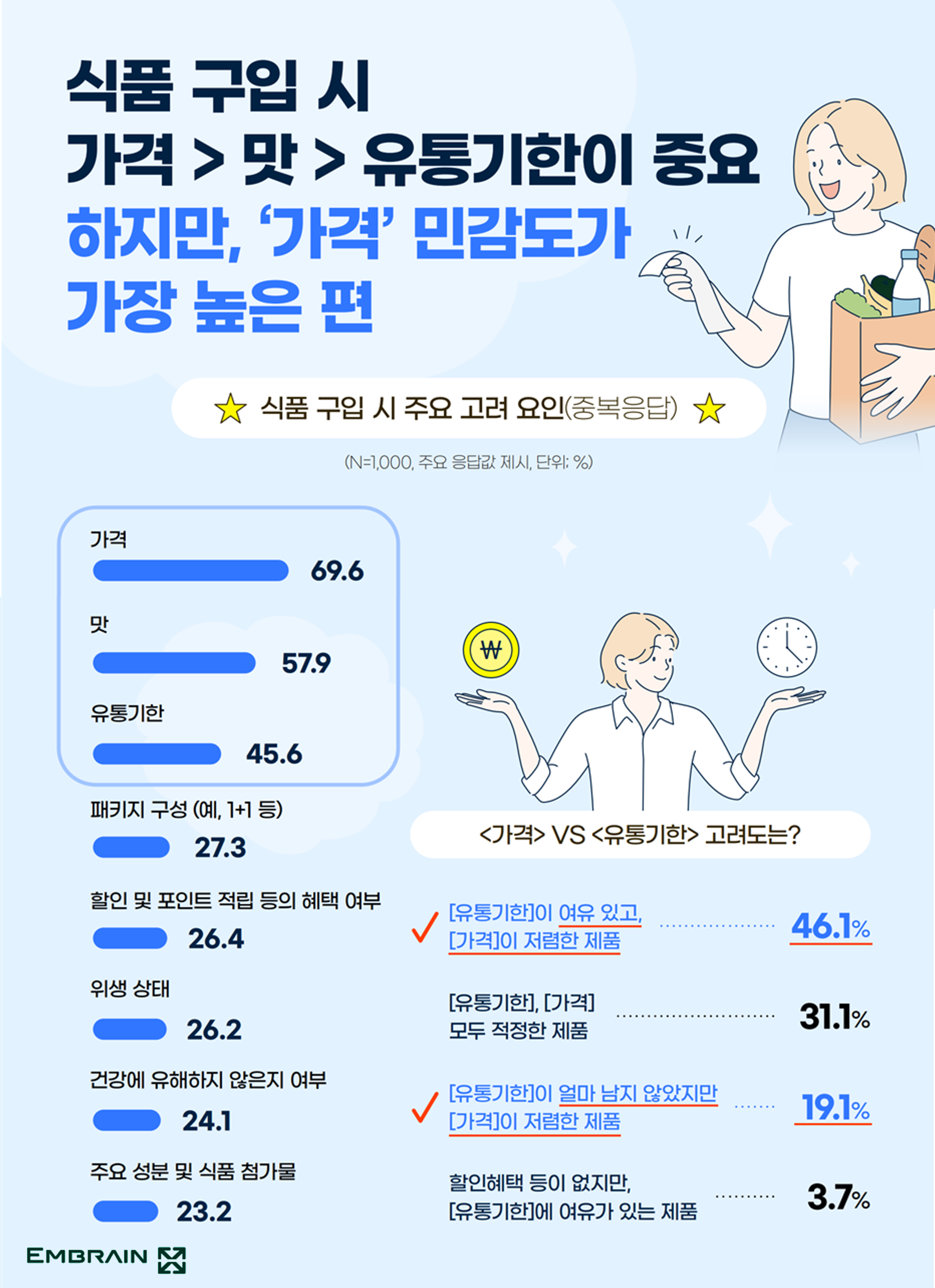 - ”식품 가격만큼 유통기한 고려하여 구매하는 편”