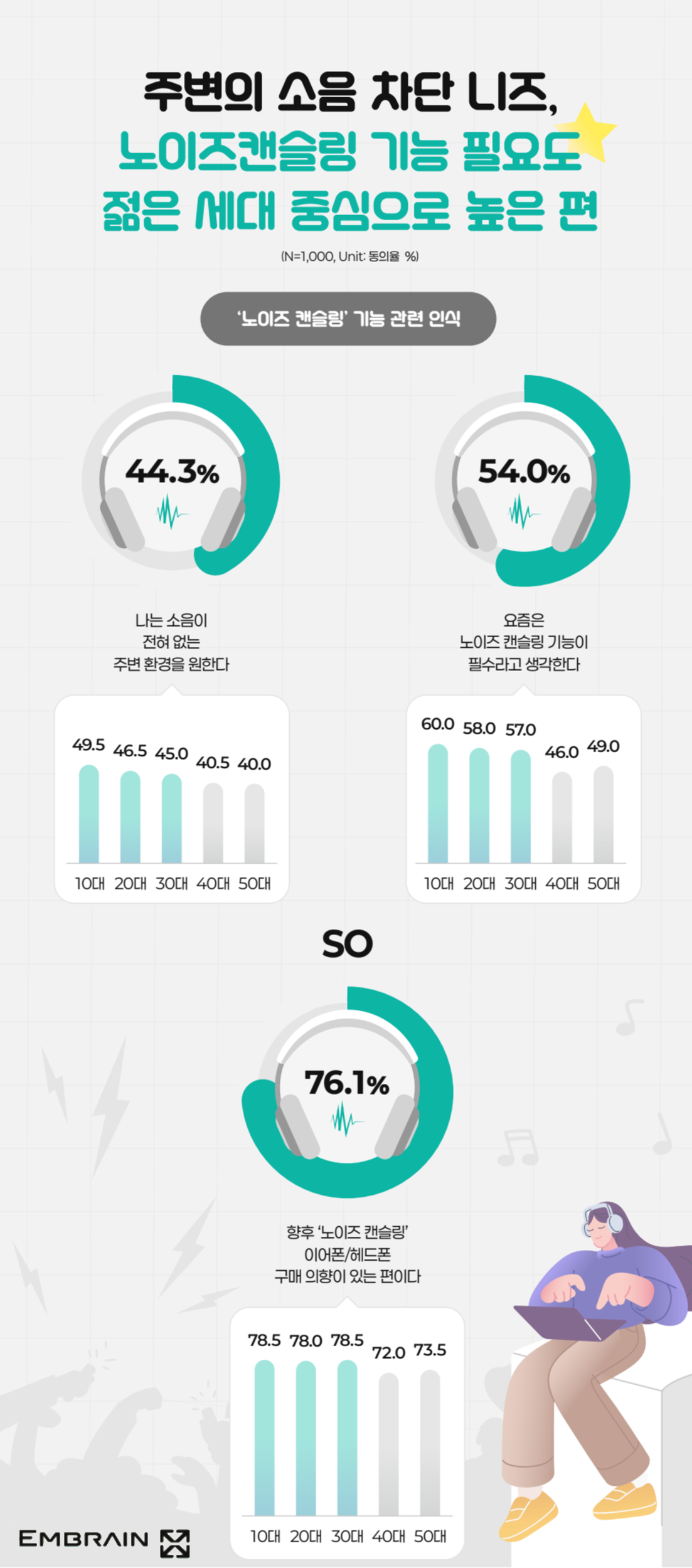 - 76.0%, “도보 이용 시 ‘노이즈 캔슬링’ 위험해”