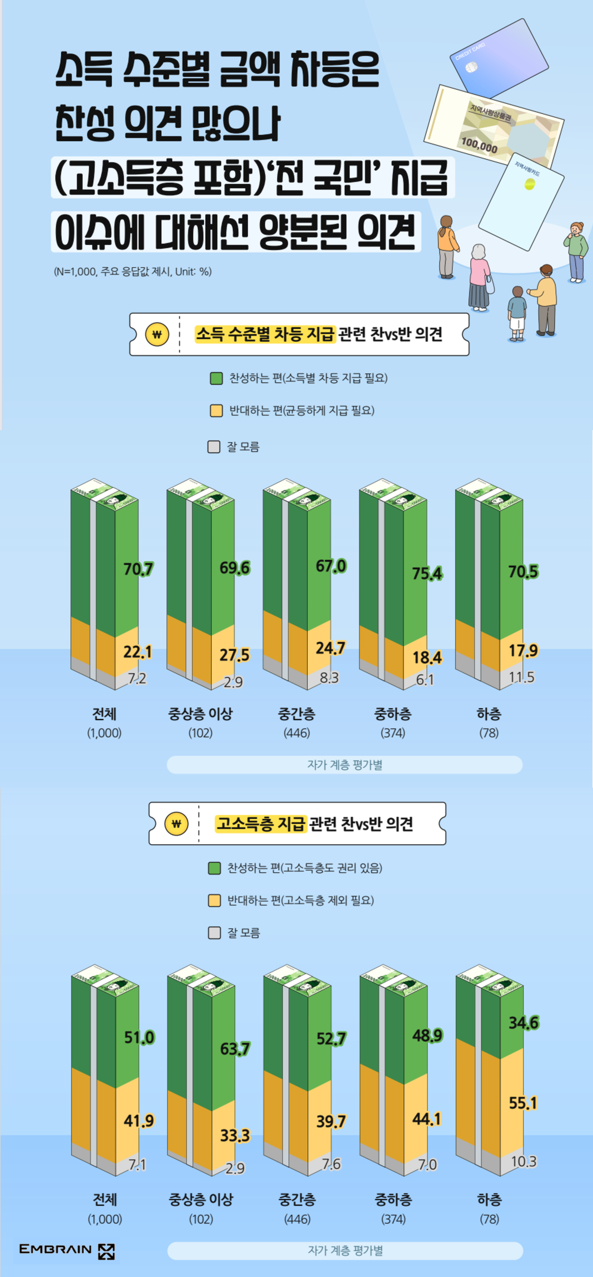 - 고소득층 지급, 찬성(51.0%) vs 반대(41.9%)