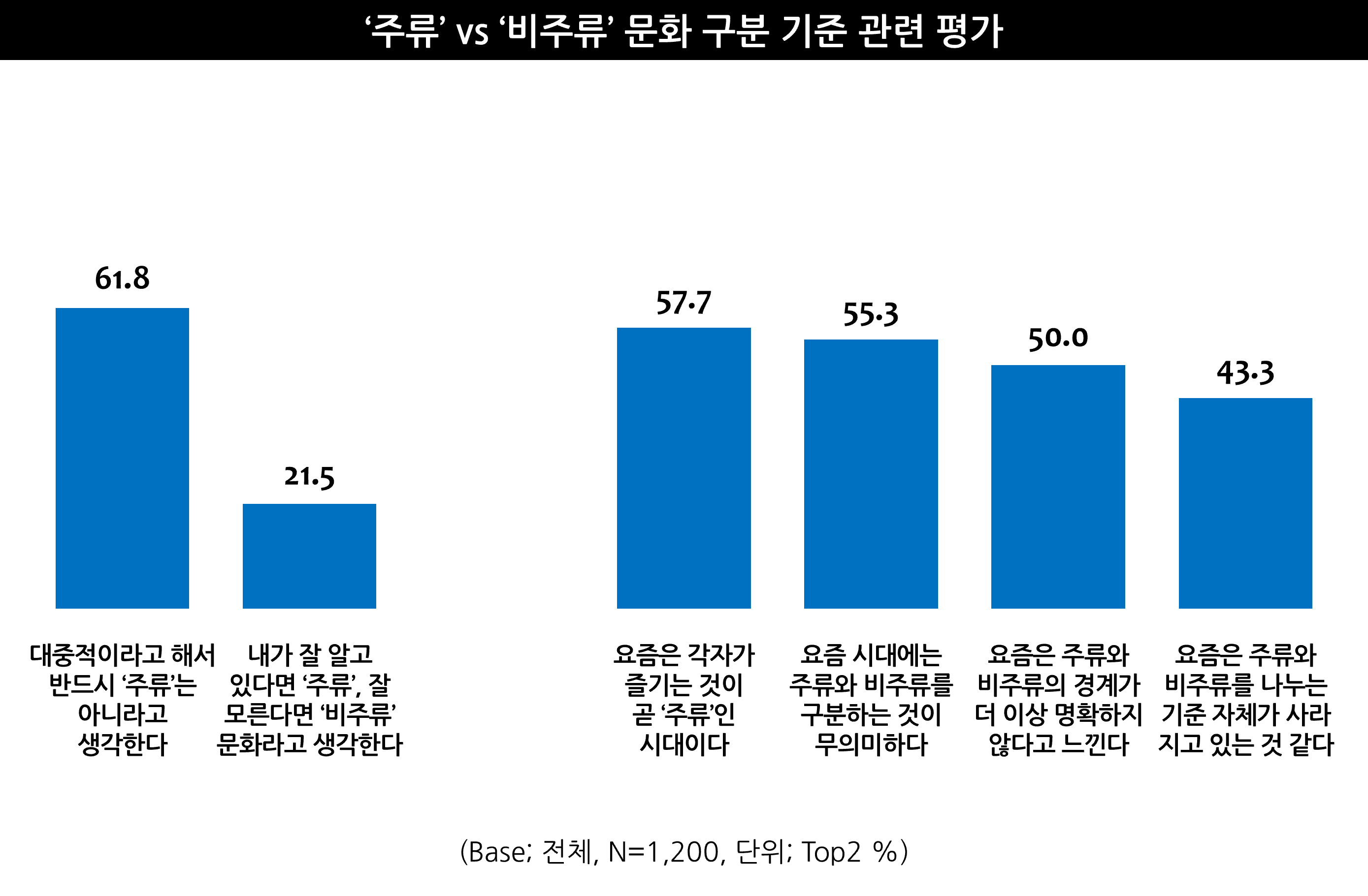 - 55.3%, “각자가 즐기는 것이 곧 ‘주류’”