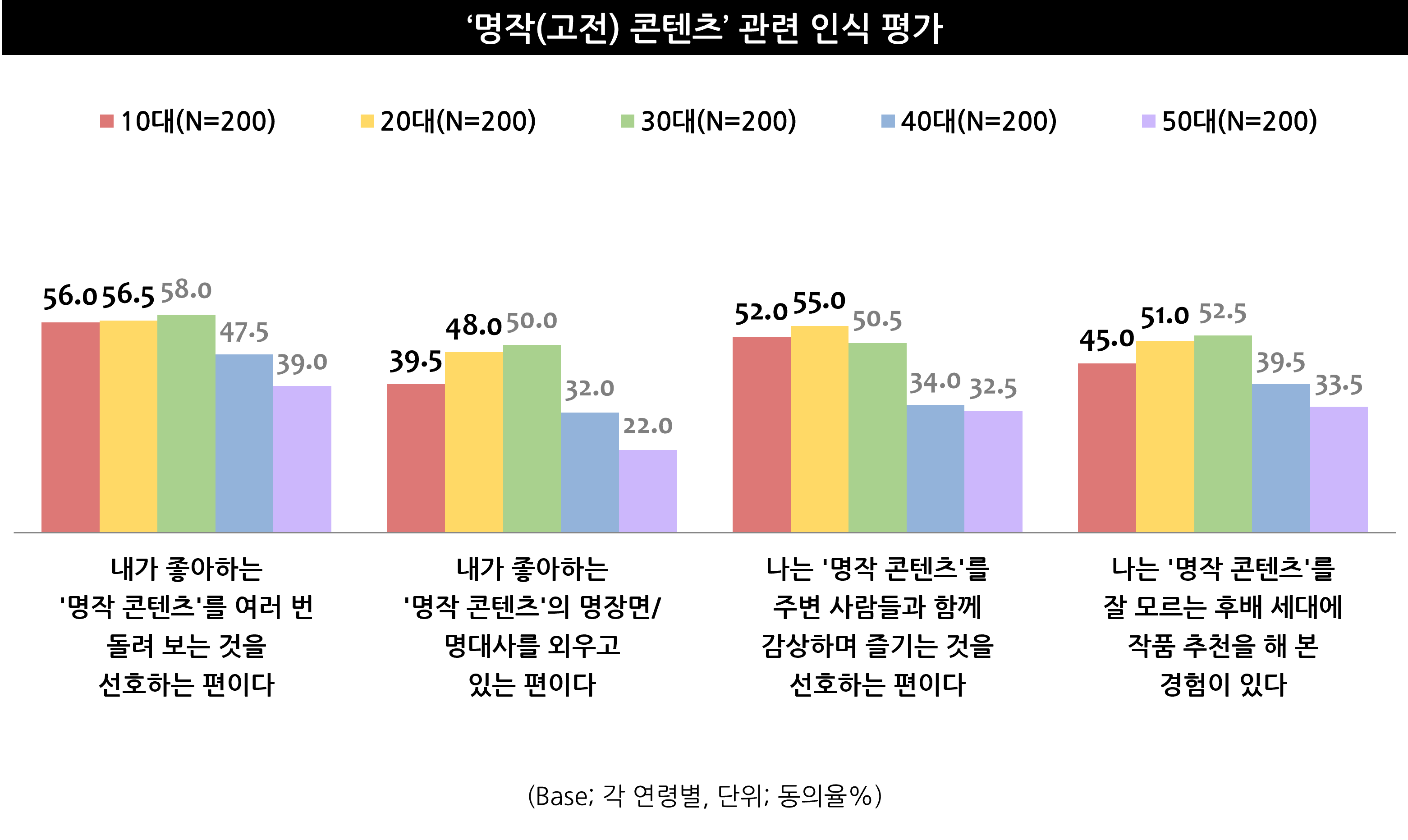- 저연령층, 후배 세대와 즐기는 ‘명작 큐레이션’ 선호