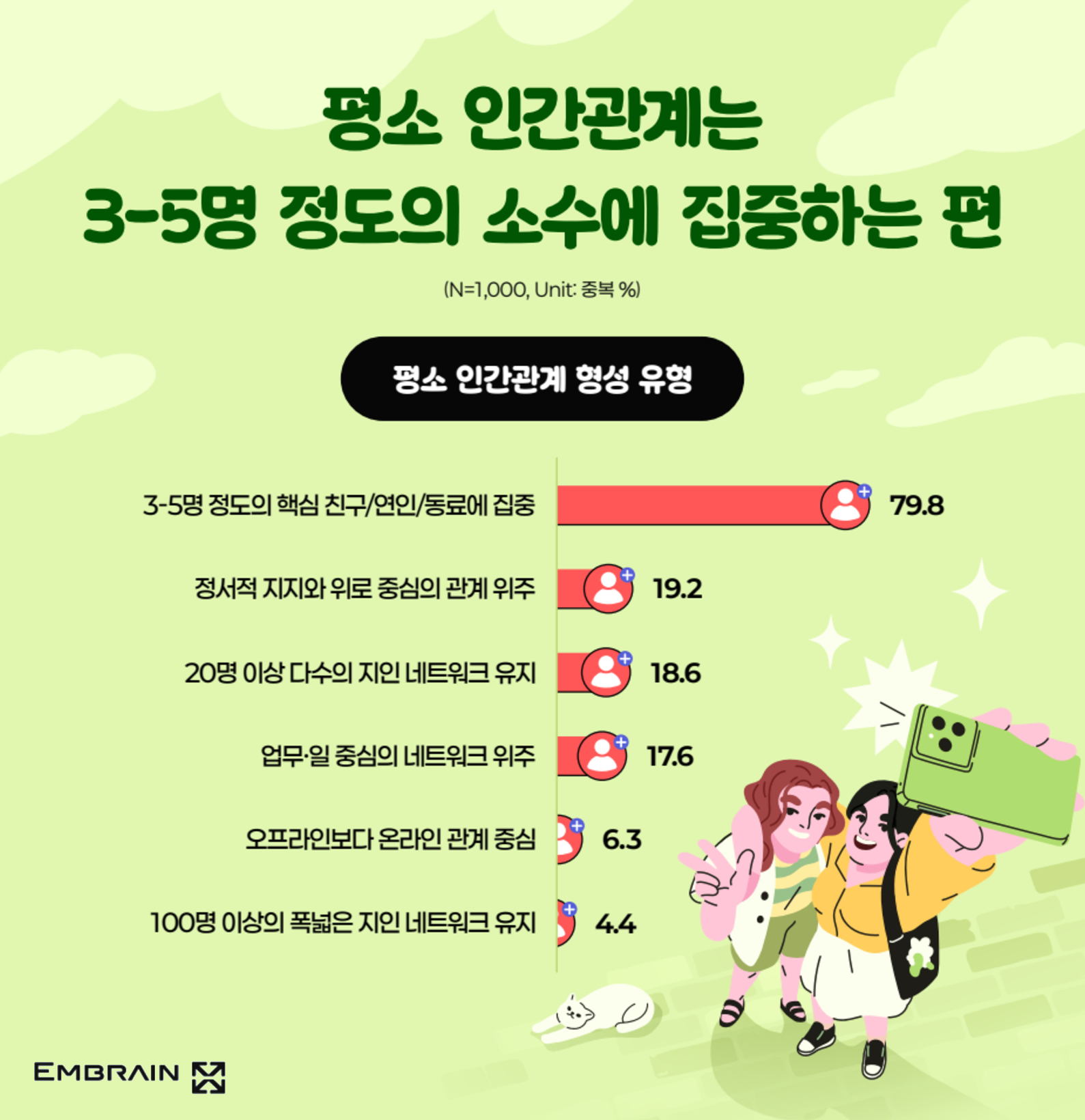 - 평소 ‘3-5명’ 정도의 핵심 친구에게 집중하는 편