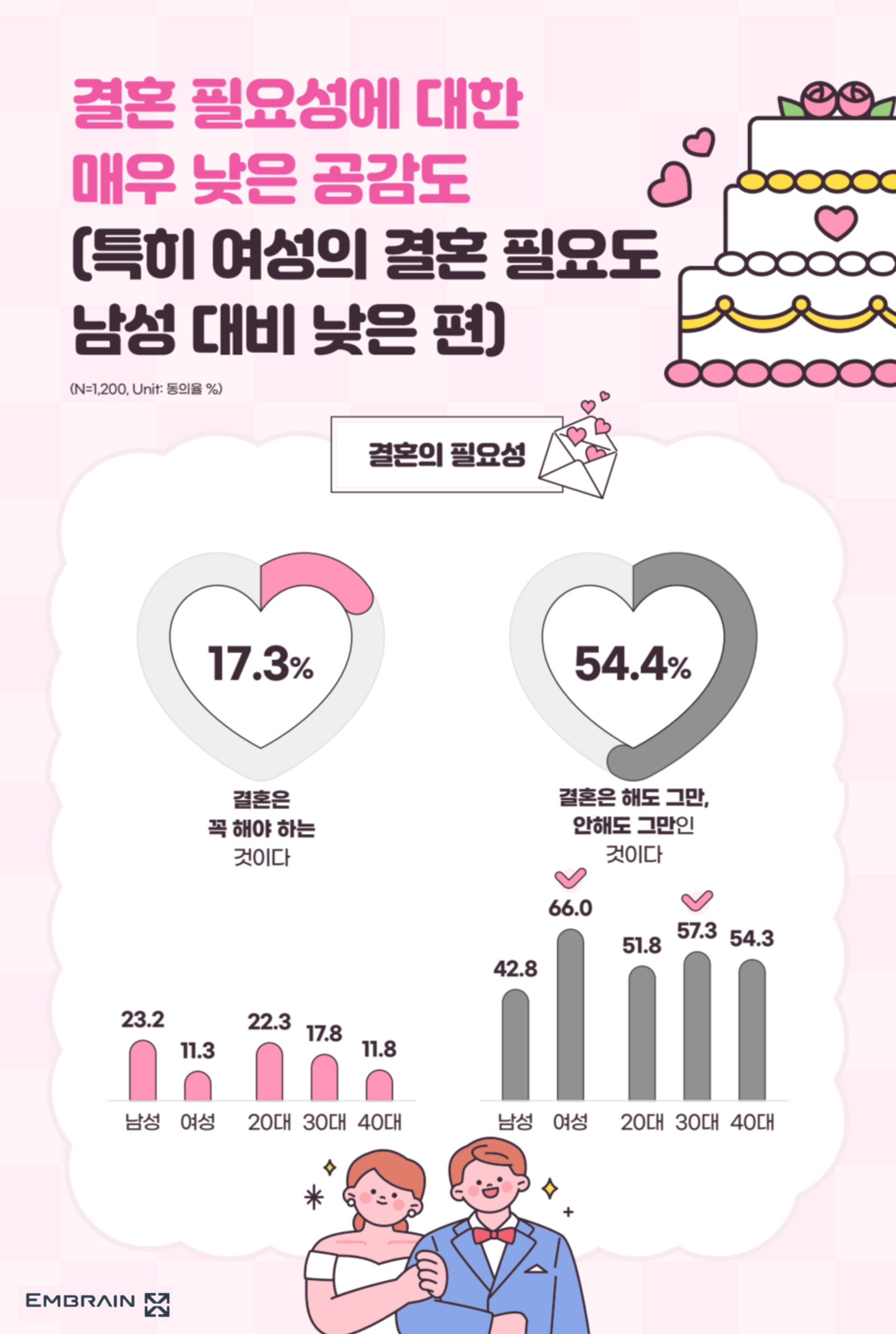 - ‘결혼은 꼭 해야 한다’는 인식, 전체 17.3% 불과
