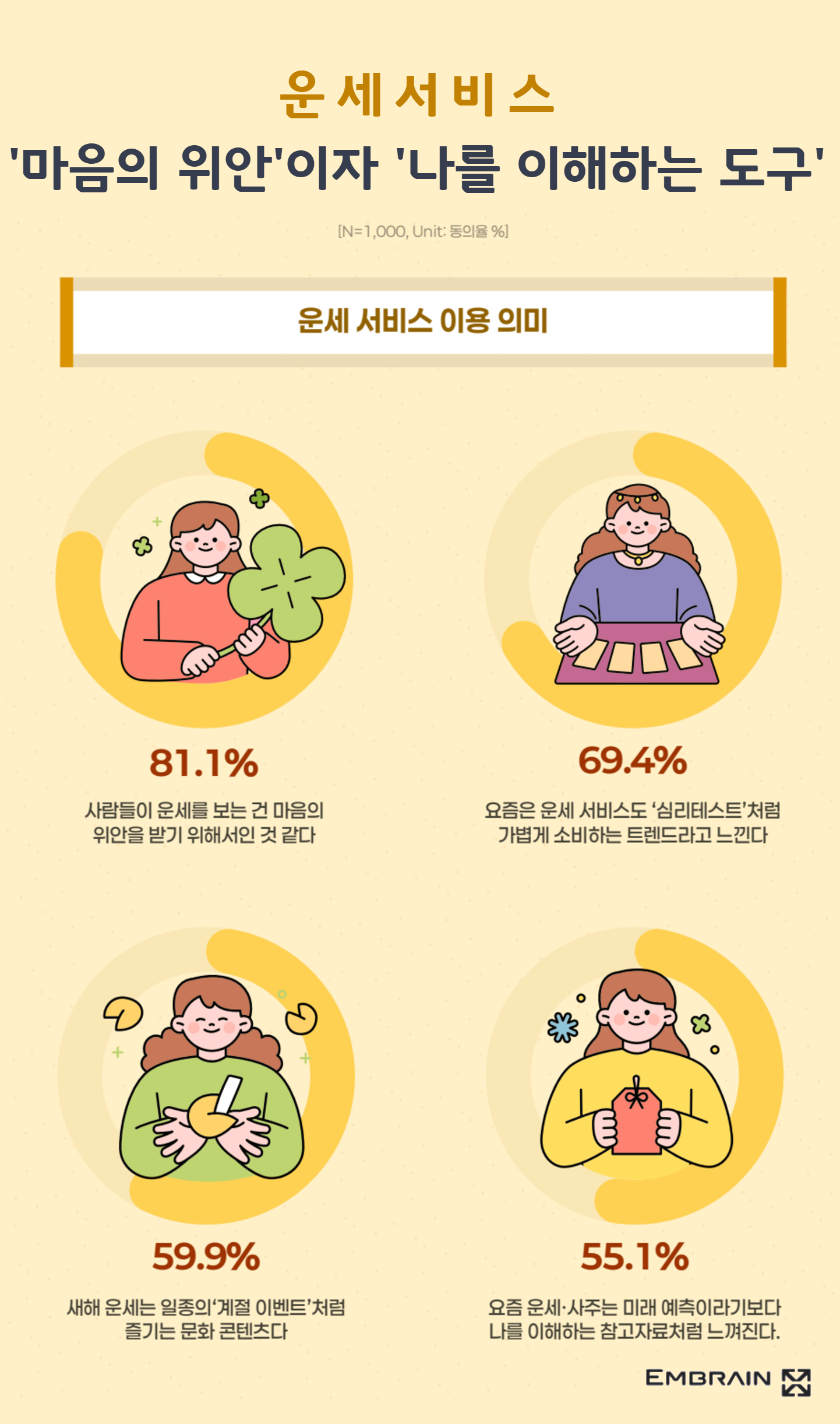 - 69.4%, “운세 서비스, ‘심리 테스트’처럼 가볍게 소비”