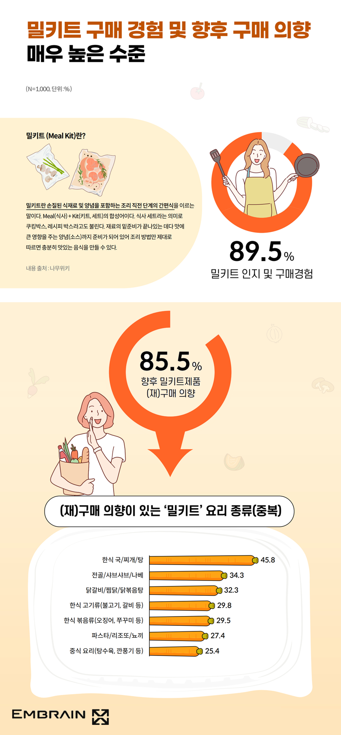 - 85.5%, “향후 밀키트 제품 구매 의향 있어”